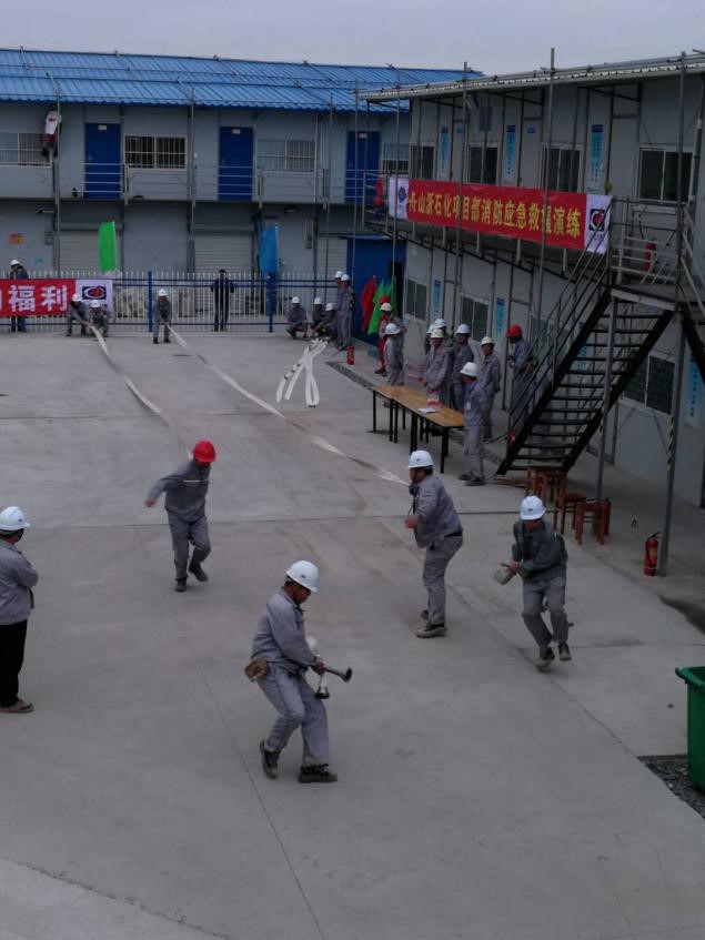 10月15日,公司舟山浙石化項目部在15#生活營地組織開展了一次“消防應急救援演練”。演練旨在普及消防安全應急知識,提高全員風險防范意思和災害應對能力,檢驗項目部在突發事故中的應急處置能力和應急救援能力。