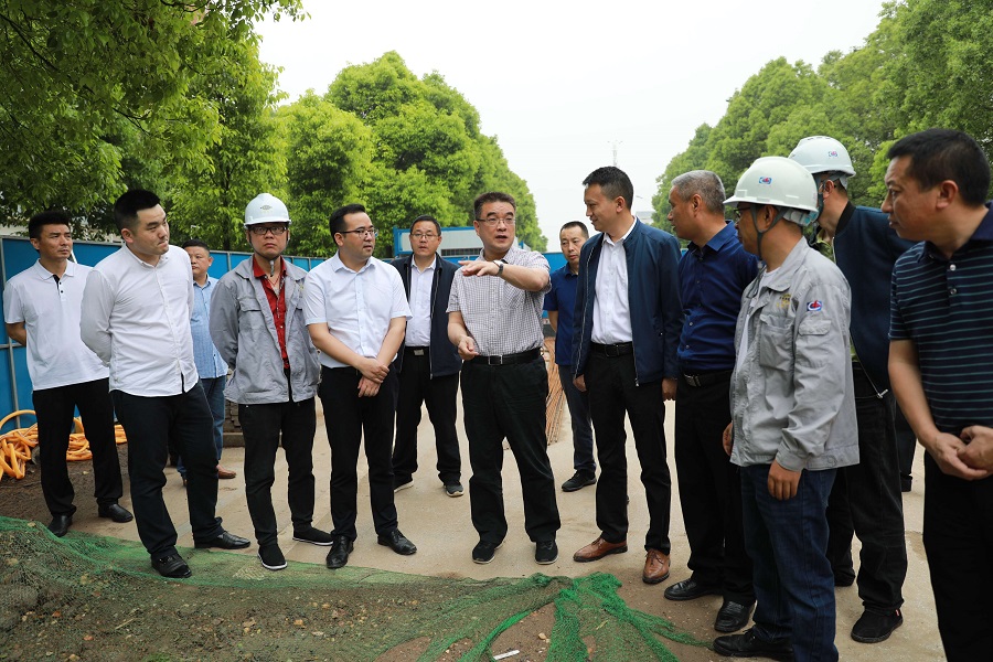 5月7日,君山區委副書記、區長李勇到岳陽市君山區中心城區污水處理廠改擴建PPP項目調研建設情況。建筑工程分公司黨支部書記、經理何學杰與君山污水項目部相關負責人陪同調研。