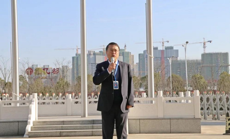 隨后,公司黨委書記胡流芳在國旗下發表新年講話。他首先代表公司向全體員工及家人拜年,致以新春的美好祝愿。他指出,新年舉行升國旗儀式,目的是為了激發大家的昂揚斗志,以飽滿的熱情、干事的激情、成事的豪情,盡快投入工作當中,推動公司高質量發展,為公司“十四五”開好局、起好步,助推公司早日實現“百億化建”目標。他強調,2021年是“十四五”開局之年,也是中國共產黨成立100周年。公司全體職工要發揮聰明才智,用務實的作風和不折不撓的精神,團結一心,鼓足干勁,奮力拼搏,以“起步即沖刺、開局即決戰”的姿態,只爭朝夕、全力以赴,以優異成績獻禮中國共產黨百年華誕!