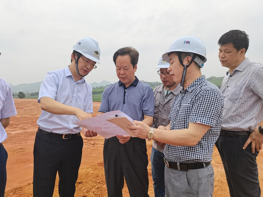 5月20日,廣西壯族自治區人大常委會副主任、崇左市委書記劉有明,崇左市委常委、常務副市長、中泰產業園黨工委第一書記羅海山,中泰崇左產業園黨工委書記、管委會主任何少偉,黨工委委員、管委會副主任黎洪一行蒞臨公司承建的中泰崇左產業園供水工程項目調研指導工作。