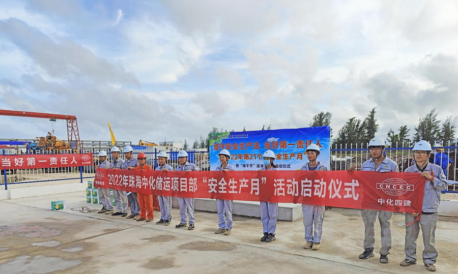 6月2日,中南公司珠海中化儲運項目部在施工現場舉行2022年“安全生產月”活動啟動儀式。活動期間,項目部將組織全員開展安全基礎知識培訓,規范安全管理,宣傳貫徹安全生產法,狠抓專項整治,扎實推進安全生產提升年活動,推動隱患排查治理無死角,組織參加公司“十佳班前會”和“安全周例會”評比,舉辦觸電事故應急救援演練等活動。