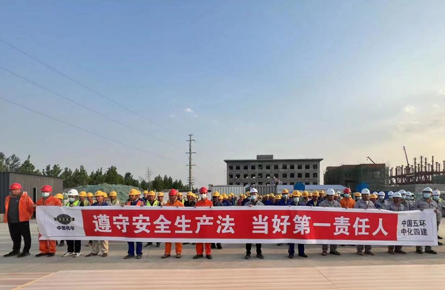 6月1日,華北公司日照旭科新材料項目部舉行2022年“安全生產月”活動啟動儀式。華北公司黨支部書記、經理吳世慶參加儀式并講話。華北公司副經理、日照項目經理張軍峰及項目部全體人員共同參加了啟動儀式。