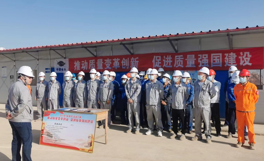 9月5日,華北公司渤化項目部開展以“推動質量變革創新,促進質量強國建設”為主題的質量月啟動儀式。儀式上,宣讀《2022年質量月活動實施方案》,對活動作了詳細部署,深入推進質量管理制度化、常態化,確保“質量月”活動取得實實在在的成效。會上要求,廣泛開展質量相關制度培訓和質量文化宣傳,讓質量觀念深入人心。做好質量責任分解工作,做到質量目標全員覆蓋,堅決杜絕質量安全事故發生。堅持精細施工,嚴守質量標準,以工程品質引領企業高質量發展。全體人員還在活動宣傳標語牌上簽名宣誓。