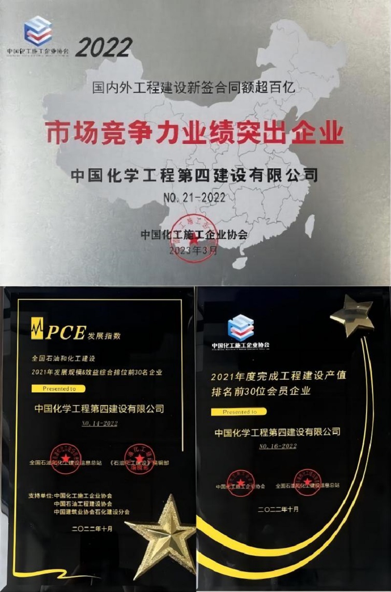 近日,從中國(guó)化工施工企業(yè)協(xié)會(huì)2023年年會(huì)暨第十屆六次理事會(huì)傳來(lái)喜訊,公司獲得多項(xiàng)榮譽(yù),被授予“2022年國(guó)內(nèi)外工程建設(shè)新簽合同額超百億市場(chǎng)競(jìng)爭(zhēng)力業(yè)績(jī)突出企業(yè)”“全國(guó)石油和化工建設(shè)2021年發(fā)展規(guī)模&效益(PCE發(fā)展指數(shù))綜合排名前30名企業(yè)”和“2021年度完成工程建設(shè)產(chǎn)值排名前30位會(huì)員企業(yè)”。