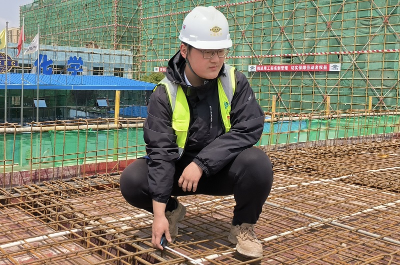 青年突擊隊(duì)不僅是“突擊隊(duì)”“生力軍”,還是項(xiàng)目“人才學(xué)校”。青年突擊隊(duì)隊(duì)員張豪元是2022年入職的大學(xué)生,因?yàn)楣ぷ鹘?jīng)驗(yàn)不足,他便堅(jiān)守施工現(xiàn)場(chǎng),向前輩們請(qǐng)教專(zhuān)業(yè)問(wèn)題。在最熱的9、10月份,張豪元每日扛著儀器放線(xiàn)測(cè)標(biāo)高,踏著朝陽(yáng)出,伴著群星歸,一身干爽的衣服走到現(xiàn)場(chǎng)就已全部濕透,在不趕工期的晚上,他就學(xué)習(xí)二建課程。張豪元從小在北方長(zhǎng)大,不太適應(yīng)南方的暴曬悶熱和辣口飯菜,整個(gè)人黑了也瘦了。