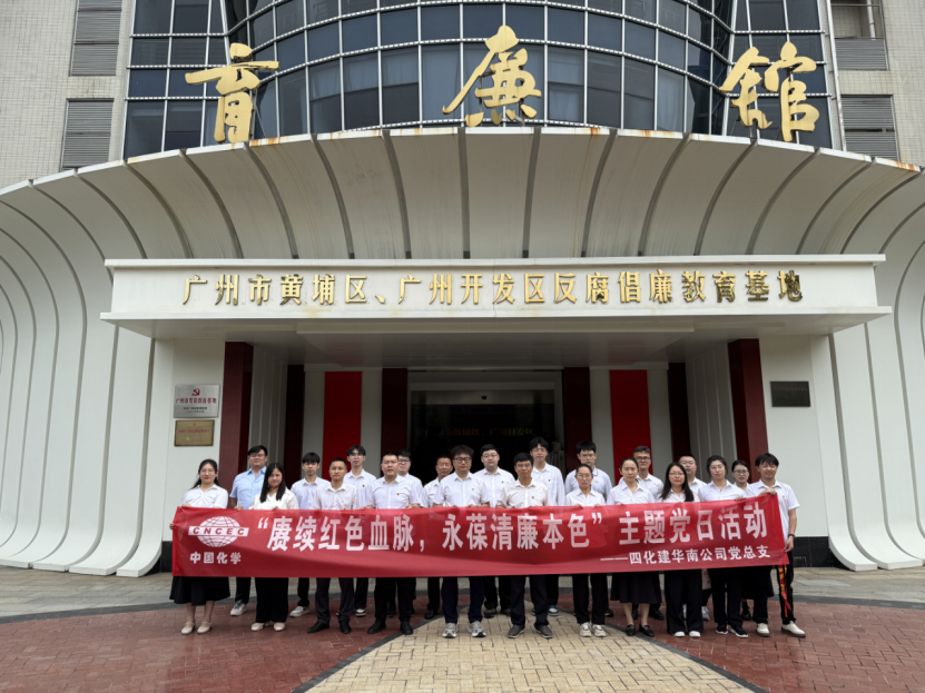 為扎實開展深入貫徹中央八項規定精神學習教育,筑牢黨員干部廉潔自律思想防線,近日,中國化學四化建華南公司黨總支組織黨員、入黨積極分子赴廣州市黃埔區育廉館,開展“賡續紅色血脈,永葆清廉本色”主題黨日活動。