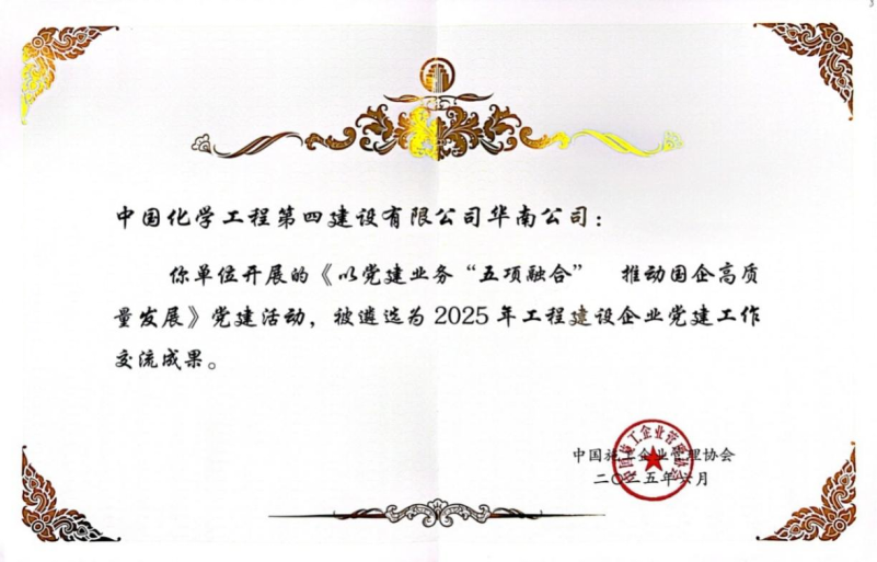 6月27日,中國施工企業(yè)管理協(xié)會(huì)2025年工程建設(shè)企業(yè)黨建工作成果交流會(huì)在京召開,會(huì)上發(fā)布2025年工程建設(shè)企業(yè)黨建工作成果推廣名單。由中國化學(xué)四化建華南公司申報(bào)的《以黨建業(yè)務(wù)“五項(xiàng)融合” 推動(dòng)國企高質(zhì)量發(fā)展》黨建項(xiàng)目案例從全國1000余項(xiàng)申報(bào)案例中脫穎而出,成功入選。這也是四化建參加中國施工企業(yè)管理協(xié)會(huì)開展的工程建設(shè)企業(yè)黨建工作典型案例征集活動(dòng)以來,連續(xù)五年榜上有名。