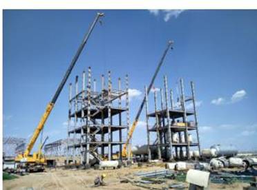 針對(duì)項(xiàng)目工期緊,任務(wù)量大,施工條件艱苦(缺水、風(fēng)沙較大)等情況,為保證施工的進(jìn)度、質(zhì)量、安全和效益,該項(xiàng)目部從勞動(dòng)力投入、材料和機(jī)具設(shè)備的配置及夜間趕工等方面作了詳細(xì)計(jì)劃和部署。在保證施工質(zhì)量和安全的前提下,夜間施工安排電工跟班,隨時(shí)排除現(xiàn)場(chǎng)電力故障,合理安排夜間施工工序和作業(yè)內(nèi)容。現(xiàn)場(chǎng)人員發(fā)揚(yáng)“五加二”、“白加黑”的苦干精神,采取加班延點(diǎn)或倒班制,想方設(shè)法加快施工進(jìn)度。由于現(xiàn)階段該設(shè)備安裝主要為拆遷后的材料及設(shè)備,現(xiàn)場(chǎng)急需對(duì)其進(jìn)行分類(lèi)組裝。施工班組利用晚上加班對(duì)拆遷的材料和設(shè)備進(jìn)行分類(lèi),白天照樣進(jìn)行吊裝焊接作業(yè),既保證了施工進(jìn)度,又確保了焊接質(zhì)量,獲得了業(yè)主的認(rèn)可及贊許,為分公司承建寧夏得中化學(xué)二期頗大的施工項(xiàng)目創(chuàng)造了有利條件。(圖為2-甲基吡啶裝置儲(chǔ)罐吊裝作業(yè)。)